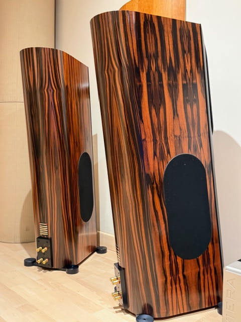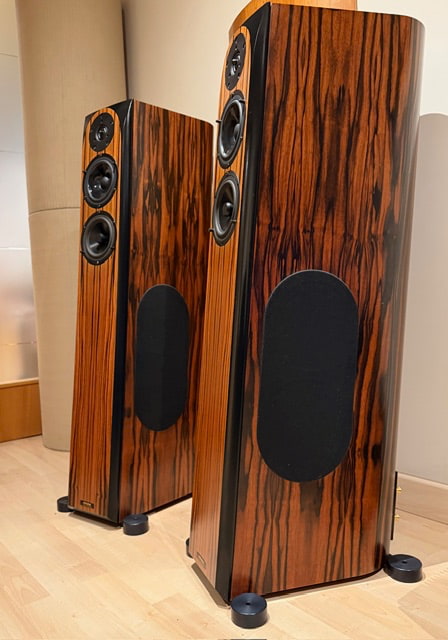 - Configuración: 3.5 vías, con tweeters de radiador de anillo Vifa personalizados y unidades de medios de cono de aluminio.