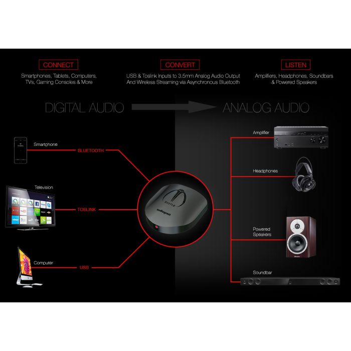 Algunos verán a Beetle como el complemento perfecto de la salida de audio óptica de una TV, a menudo la única salida de audio que se ofrece en una TV moderna. Mientras que otros querrán usarla como una actualización principal para sus reproductores multimedia favoritos o consolas de juegos.