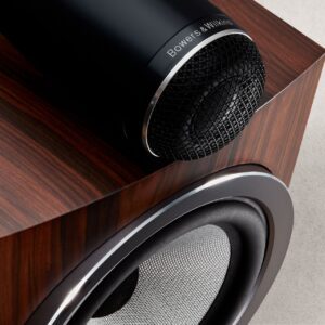 - Tweeter de cuerpo sólido: La serie 700 presenta la última generación de nuestra icónica carcasa de tweeter de cuerpo sólido en la parte superior. Su nueva forma más alargada incorpora un sistema de carga de tubo más largo para producir un sonido aún más libre y abierto con frecuencias altas. La carcasa cuidadosamente desacoplada está fresada a partir de un solo bloque sólido de aluminio para resistir mejor la resonancia.