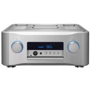 El F-01 se ha mejorado significativamente con respecto a la Serie F anterior en términos de funcionalidad y calidad de sonido, incorporando una serie de nuevas tecnologías del desarrollo del preamplificador insignia Grandioso C1X. El preamplificador dual mono balanceado de gran escala, comparable a un preamplificador separado, viene de serie con tres entradas analógicas ES-Link que permiten nuestra entrada de señal patentada basada en corriente desde los reproductores de fuente digital Esoteric K/N Series para una experiencia auditiva en vivo como si monitoreado directamente desde una consola analógica de estudio de grabación. La nueva Serie F también cuenta con un exclusivo «Sistema atenuador de ultra fidelidad» y la sección de fuente de alimentación del preamplificador se ha mejorado aún más. Otras características clave del preamplificador incluyen un amplificador de auriculares totalmente balanceado, un preamplificador de fono dual mono y un control de tono balanceado de 3 bandas de alta calidad.