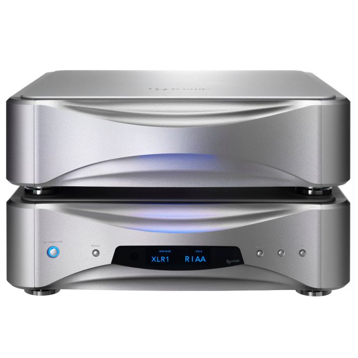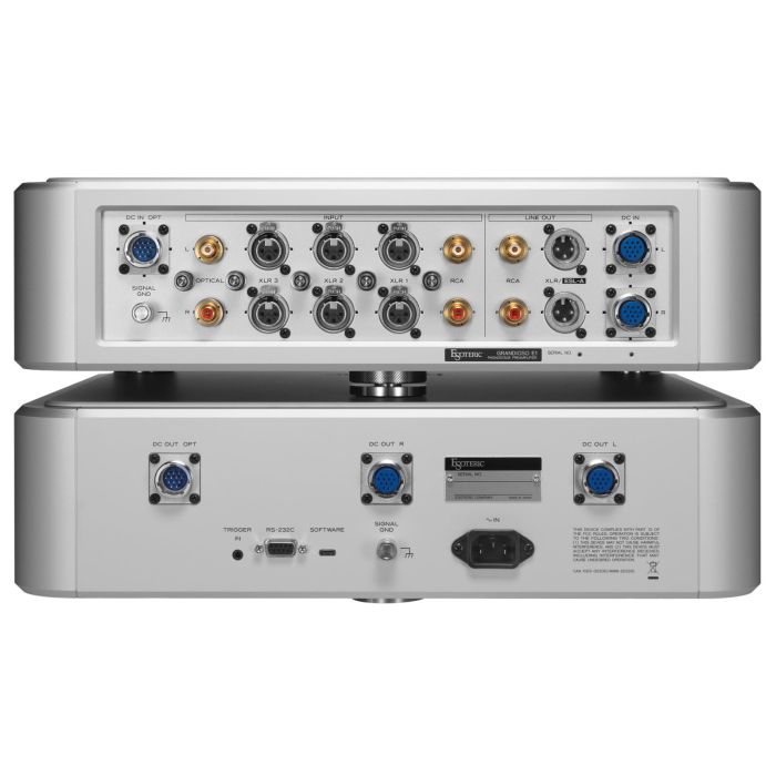 El Esoteric Grandioso E1 cuenta con una configuración de dos chasis que separa la sección de control y alimentación de la unidad de preamplificador de la etapa de fono principal. Al aislar los circuitos de alimentación, control y visualización (que son fuentes de vibración y ruido), la señal de audio se puede amplificar con una pureza excepcional.
