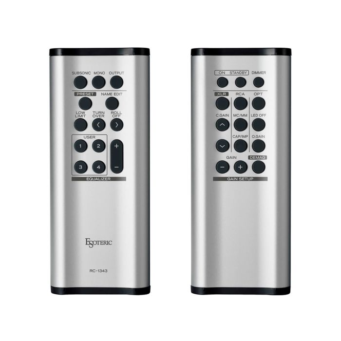 A pesar de su apariencia simple y elegante, el Esoteric Grandioso E1 es capaz de ajustar varias curvas de ecualización al nivel de un equipo de estudio profesional. Se pueden recuperar seis curvas de ecualización típicas (RIAA, Columbia, Decca, NAB, Teldec y AES) con solo tocar un botón en el control remoto. Además, se pueden predefinir hasta cuatro configuraciones de ecualización personalizadas ajustando individualmente tres parámetros de ecualización (Low Limit, Turnover y Roll-Off). Los valores de referencia para configurar las diversas curvas de ecualización se proporcionan en el manual del usuario para ayudarlo a lograr la mejor calidad de sonido de cualquier disco de vinilo.
