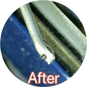 A diferencia de los limpiadores de agujas que utilizan vibración de motor para limpiar la aguja con un cepillo de cerdas cortas, HumminGuru S-DUO utiliza tecnología ultrasónica para proteger mejor y prolongar la vida útil de la aguja sin que se produzcan abrasiones . Limpiar la aguja en el baño ultrasónico con agua no requiere contacto físico y, por lo tanto, no supone ningún riesgo para la superficie de la aguja.