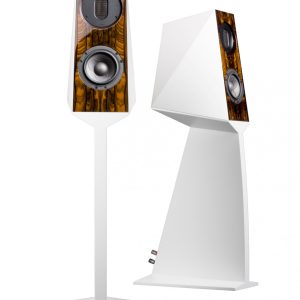 Attractive in the modern domestic interior, this surprisingly weighty loudspeaker features an ultra-thin stand which hides the internal signal wires. Thus, a sleek modernity and clean domestic look is maintained, while a huge, high performance, enveloping sound field is created, emanating from sculpturesque objects of friendly proportions.