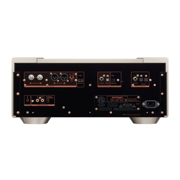 El reproductor de CD Marantz SACD 10 admite fuentes balanceadas a través de DAC de tipo USB-A y de tipo USB-B, además de compatibilidad con DSD256 y PCM 384 kHz / 32 bits. Las opciones de conectividad también incluyen entradas y salidas digitales coaxiales y ópticas, y salidas analógicas XLR y RCA de nivel fijo.