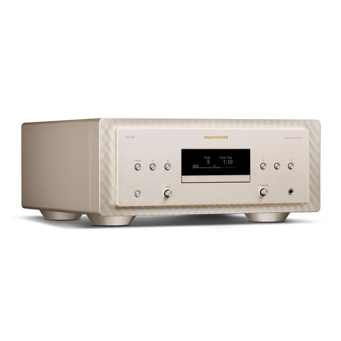 Con una superficie de control de aluminio cepillado, detalles de acabado hilado, una estructura de aluminio de sección gruesa y un chasis de triple capa bañado en cobre, el Marantz SACD 10 es único en su clase. Disponible en dos combinaciones de colores, Marantz Black y Marantz Champagne, para complementar cualquier entorno.
