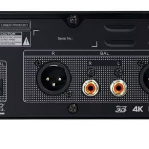 CARACTERÍSTICAS: Salidas analógicas estéreo balanceadas XLR y RCA; 2 x USB (uno montado en la parte delantera); la reproducción multimedia admite MP3, FLAC, AIFF, DSF/DFF, OGG y APE; pantalla de visualización de medios que incluye MaxFALL y MaxCLL; conjunto de chips Mediatek MTK8581; modo de reproducción directa; DAC de ocho canales