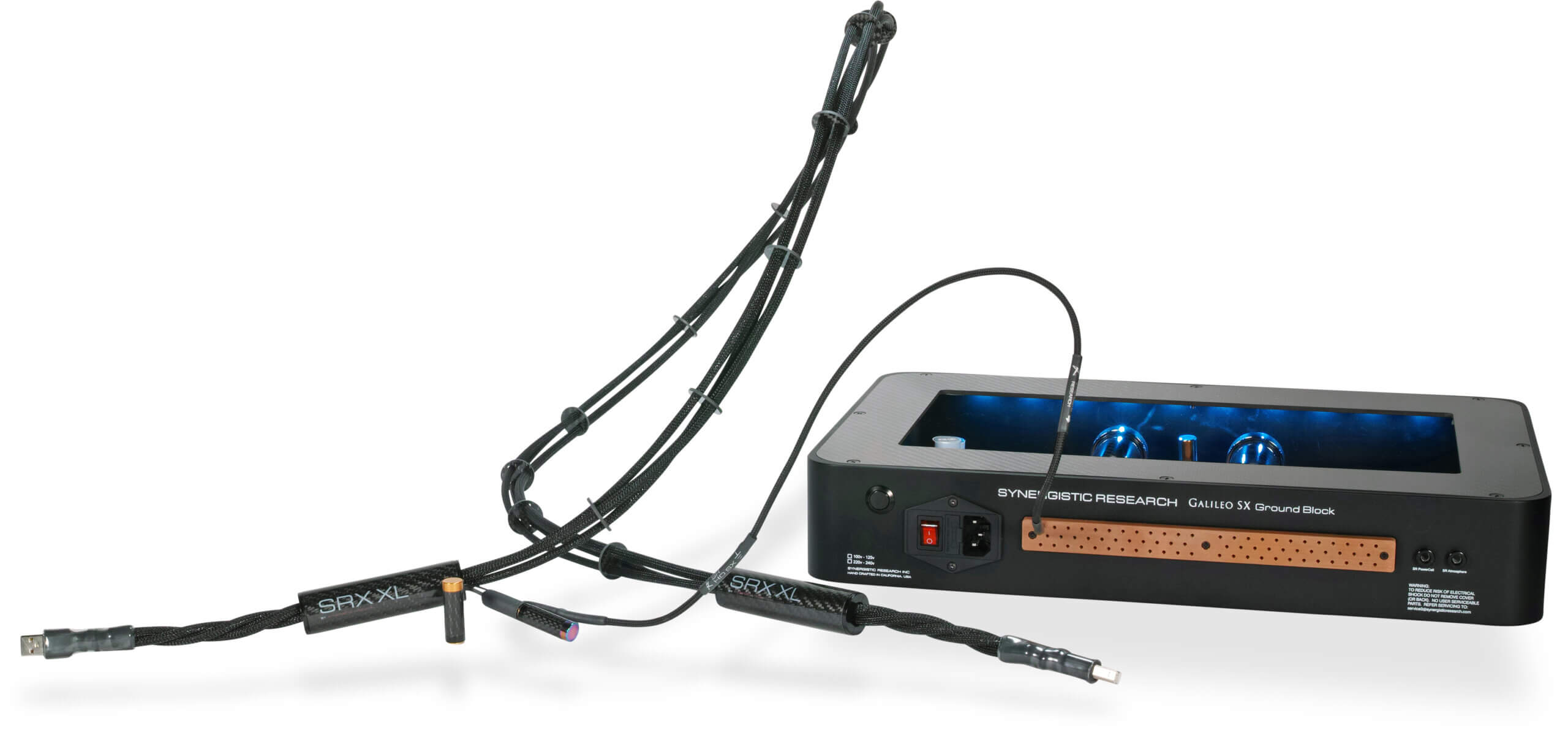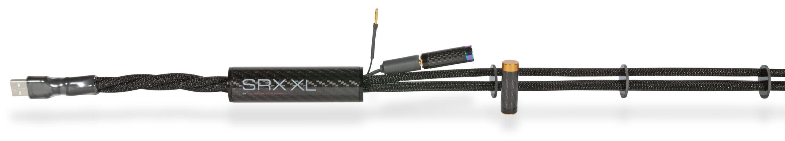 Los cables USB SRX XL permiten conectarlos a tierra mediante un bloque de tierra Synergistic Research (se vende por separado) para optimizar aún más el rendimiento. Entre las ventajas se incluyen un notable aumento de la potencia y el peso de los graves profundos, un campo sonoro más holográfico, frecuencias altas más suaves con mayor extensión y amplitud, un rango medio más presente y con capas, y una mayor densidad tonal con un aparente aumento de la resolución.